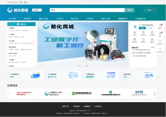 “能化商城”作為集團陽光采購的核心載體,嚴格踐行國家關于國企電商采購的政策要求,通過精準賦碼確保商品全生命周期可追溯,并依托比質(zhì)比價機制實現(xiàn)采購過程透明化、程序規(guī)范化,有效落實陽光采購目標。其核心功能聚焦于構建高效、合規(guī)的企業(yè)級通用物資采購場景,深度整合需求、審批、比價、下單、結算全流程,顯著壓縮了流程時間并降低了隱性成本,為集團提供了集中、透明、便捷的通用類物資采購解決方案。平臺目前開放運營辦公、勞保、通用工業(yè)品三大通用類專區(qū),上架12大類57小類近2萬件商品。